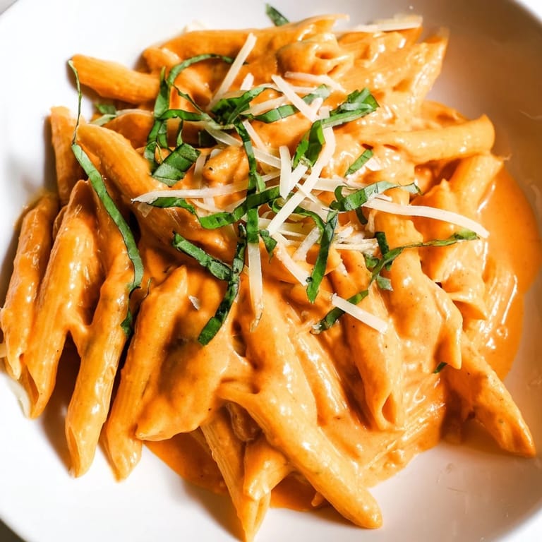 My friend Sofia used to tease me about keeping jarred roasted red peppers in my pantry like they were gold. One Tuesday evening, when the fridge was nearly empty and my energy was even lower, I grabbed that jar and decided to see what would happen if I blended it with cream. The sauce turned this stunning coral color, clung to every piece of penne, and tasted like I'd been simmering something fancy for hours. Sofia stopped teasing me after that dinner.