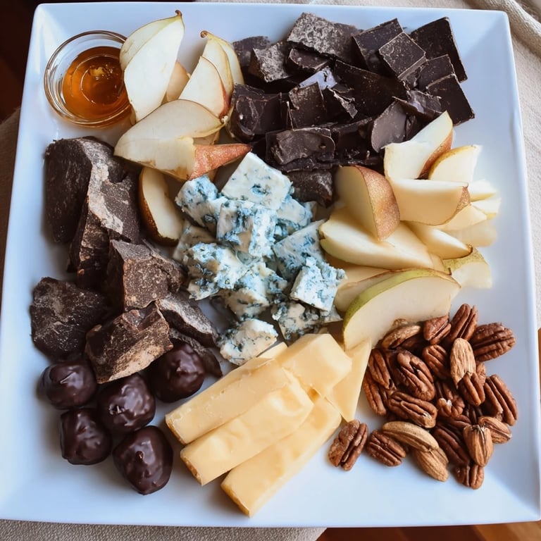 Roasted walnuts or pecans add a satisfying crunch and complement the creamy cheeses and sweet chocolates.