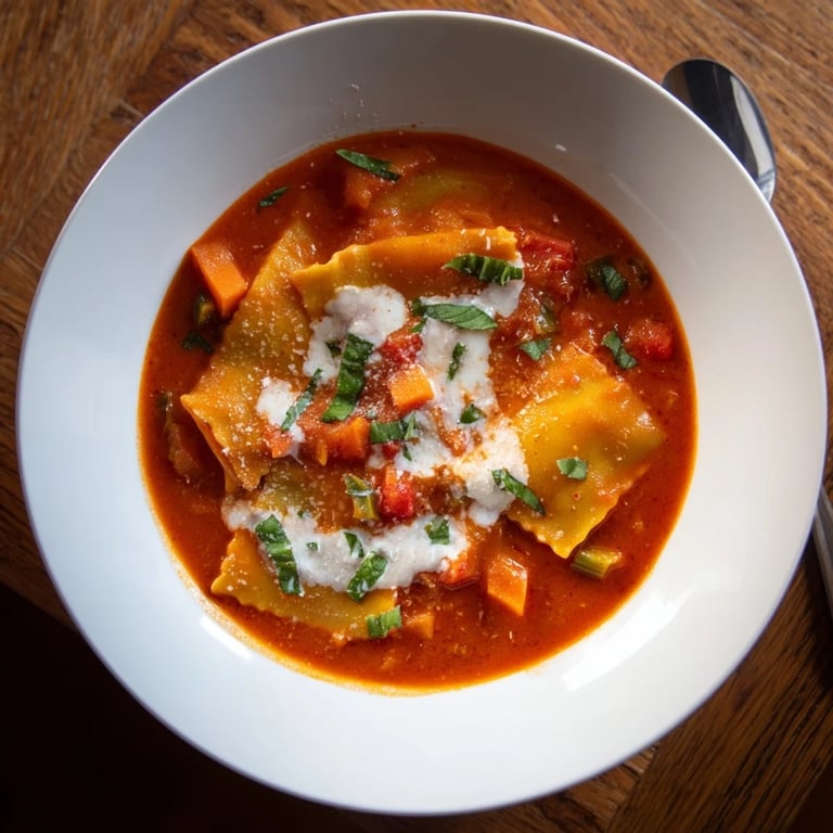 Save A luxurious twist on classic lasagne, this hearty soup blends tender pasta with rich tomato broth and a velvety truffle-infused cream for an indulgent finish.