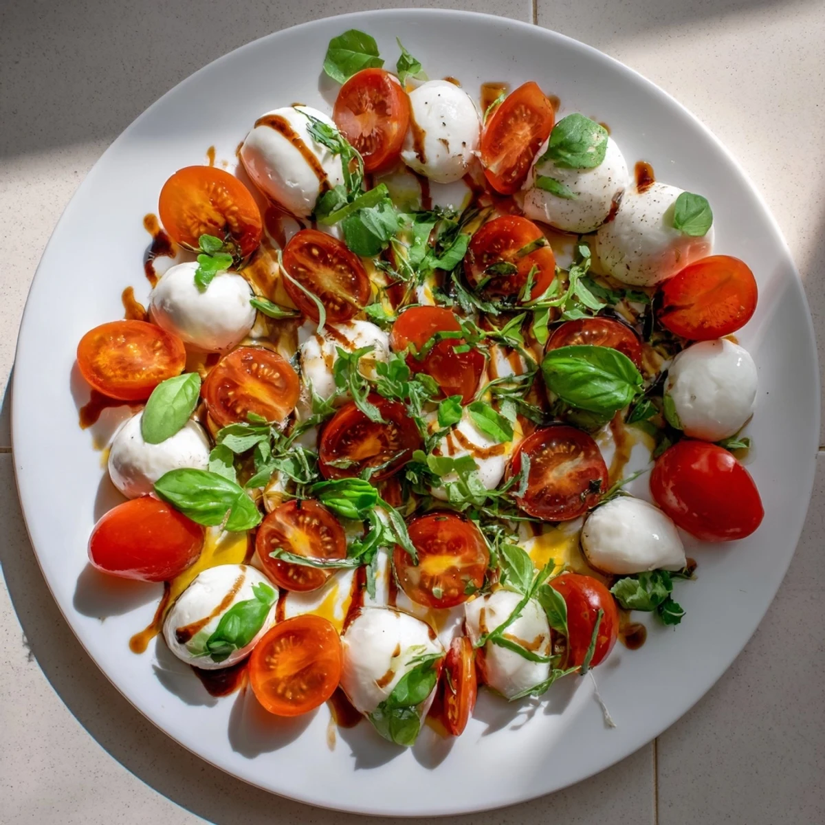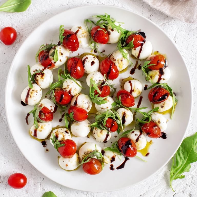 Save There's something about mozzarella pearls that stops you mid-bite—the way they catch the light on the plate before they melt on your tongue. I stumbled onto this salad on a sweltering afternoon when my neighbor brought over a handful of ciliegine she'd bought at the farmers market, and I had nothing but tomatoes, basil, and arugula in my fridge. We arranged them together like we were composing a still life, draping those little pearls in a dramatic curve, and suddenly we had something that looked restaurant-worthy but tasted like summer itself.