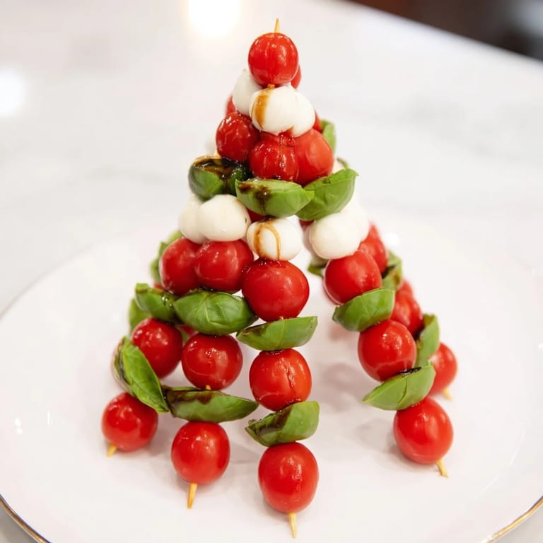 Save A festive and colorful appetizer featuring juicy cherry tomatoes, fresh mozzarella, and basil leaves arranged in a stunning tree shapeโperfect for holiday gatherings.