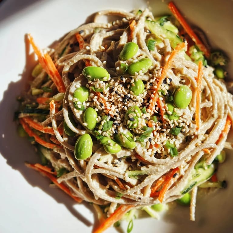 Save There's something about the smell of sesame oil hitting a hot pan that makes me pause mid-stride through the kitchen. Years ago, I discovered this noodle salad on a sweltering afternoon when my fridge held nothing but desperation and an almost-forgotten container of tahini. What started as a salvage mission became the dish I now make whenever I need something cold, bright, and honest on the table.