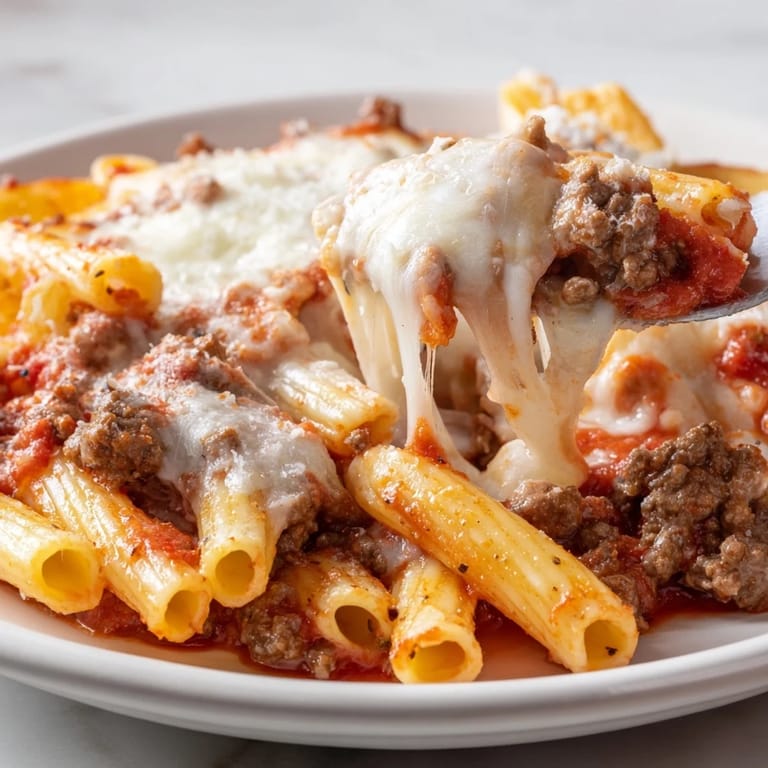 Save A hearty, comforting casserole featuring tender penne pasta, savory ground beef, rich tomato sauce, and a golden, bubbling cheese topping—perfect for family dinners or potlucks.