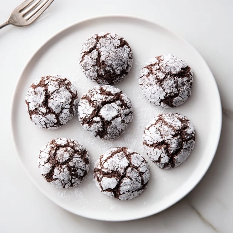 For a richer chocolate taste, try using Dutch-process cocoa powder. Keep the dough chilled thoroughly to help the cookies crackle perfectly as they bake. If the dough feels too sticky for rolling, refrigerate it a little longer until easier to handle.