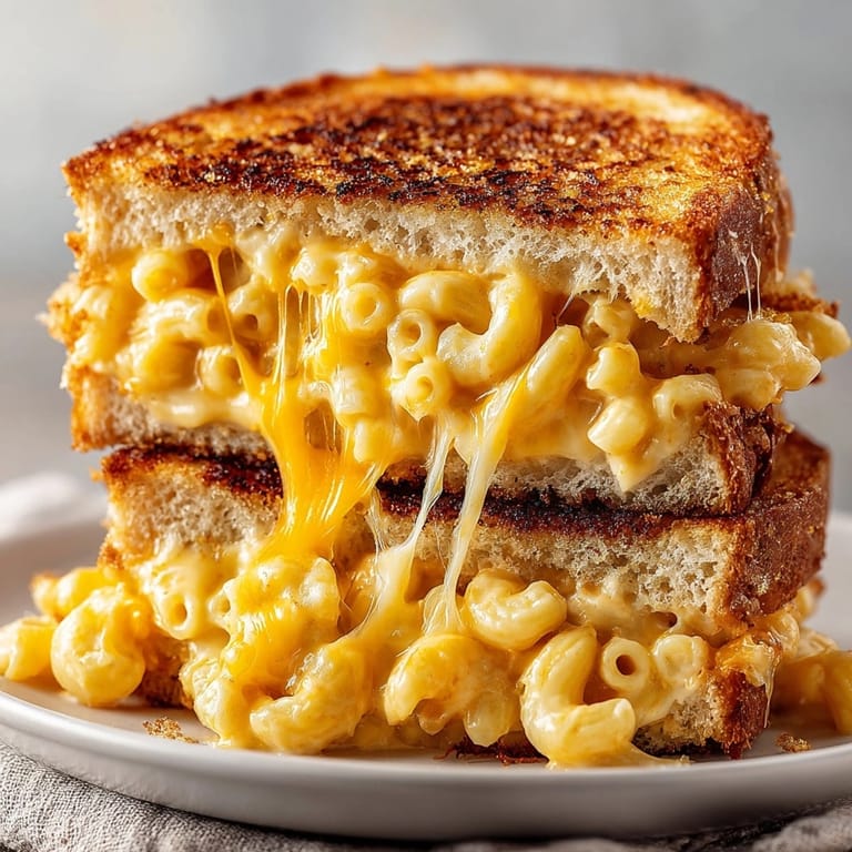 Save This mac and cheese grilled cheese sandwich is pure comfort layered between crispy bread slices. You get the creamy indulgence of homemade macaroni and cheese, nestled between slices of hearty bread and extra melty cheese, all toasted to golden perfection. It is heaven for cheese lovers and the ultimate way to satisfy your comfort food cravings.