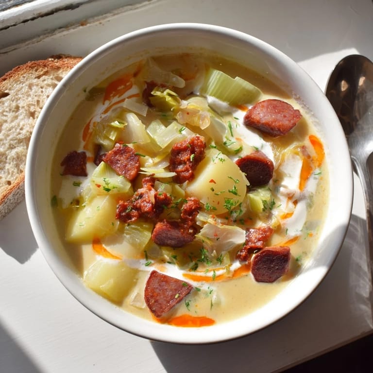 Save This soup combines simple kitchen staples into a dish that delivers deep, smoky notes from paprika and chorizo, rounded out by the natural sweetness of leeks and potatoes. It’s a flexible recipe that invites creativity without compromising on comfort and heartiness.